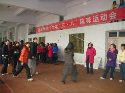 2010年3月5号下午2点,由学校工会组办的“三·八”妇女节系列活动之—趣味运动会在南区体育训练馆拉开帷幕。麻豆社 工会组织了强大阵容参加比赛。比赛现场人声鼎沸、热闹非凡。 这次趣味运动会包括抛绣球、流水跳大绳、双人背运篮球接力、集体搬运等四个妙趣横生的体育项目。这些项目集趣味与技能一体,让激情与朝气并发,在欢动愉悦的气氛下,展现了麻豆社 教师的风采。 经过激烈的角逐,麻豆社 获得集体搬运项目一等奖,其他项目获得参与奖。