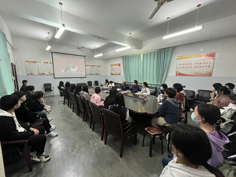 (教工通讯员  占正丽)5月10日上午10时,麻豆社 组织师生在N4-312会议室集中收看庆祝中国共产主义青年团成立100周年大会。党委书记徐超、副书记胡益丁、分团委书记李玉凤、辅导员占正丽等老师和学生代表参加了活动。
