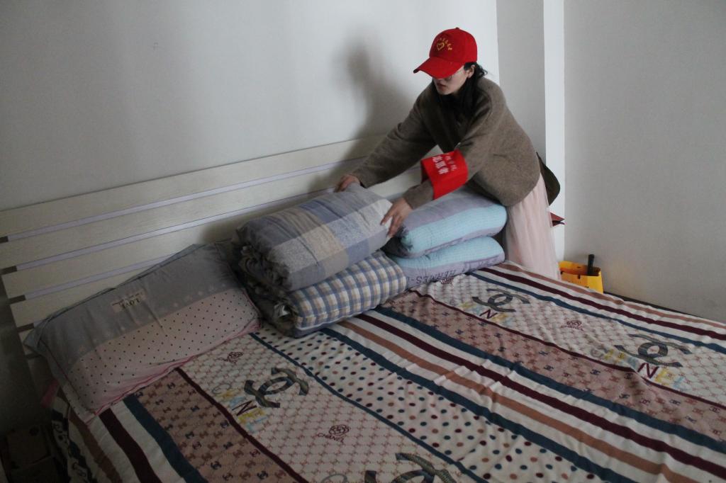 志愿者帮空巢老人叠被子