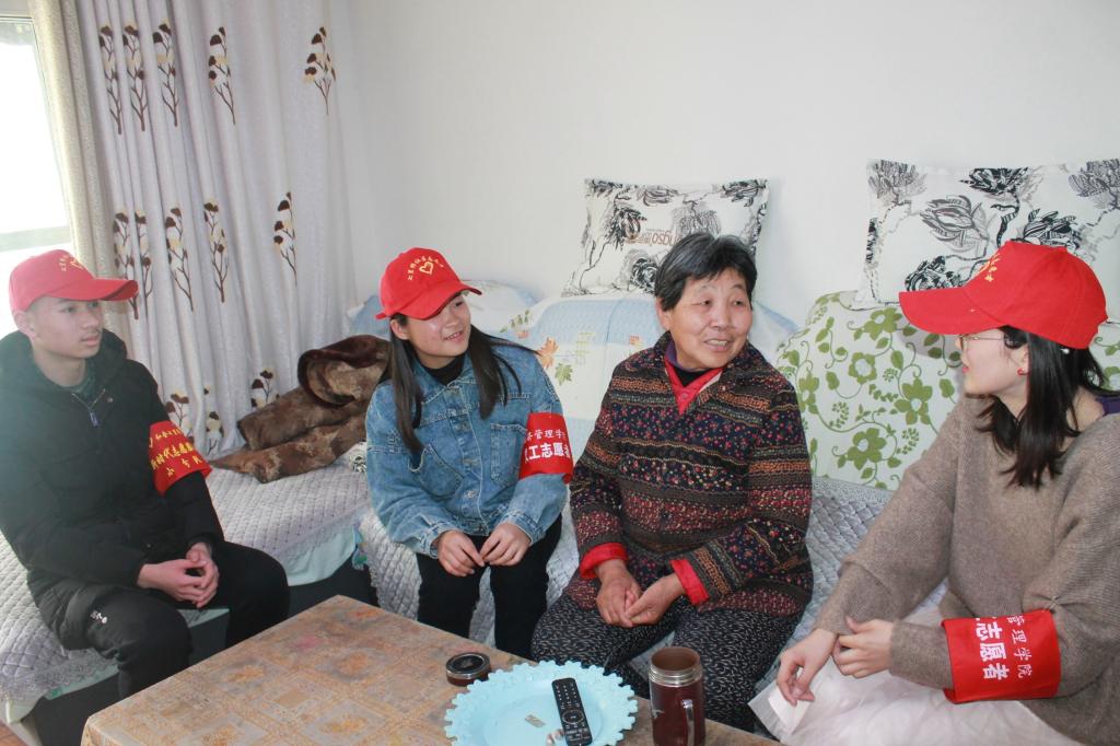 经管学院志愿者服务队一行15人走进七桥还建小区看望空巢老人喻奶奶,帮喻奶奶收拾房间、整理被褥,擦洗桌椅门窗、整理内务,还与老人谈心聊天,了解她的生活起居情况。“家里好久没有这么热闹了,志愿者们不仅帮助我做家务,更让我感受到了热情与温暖。”喻奶奶笑着说。