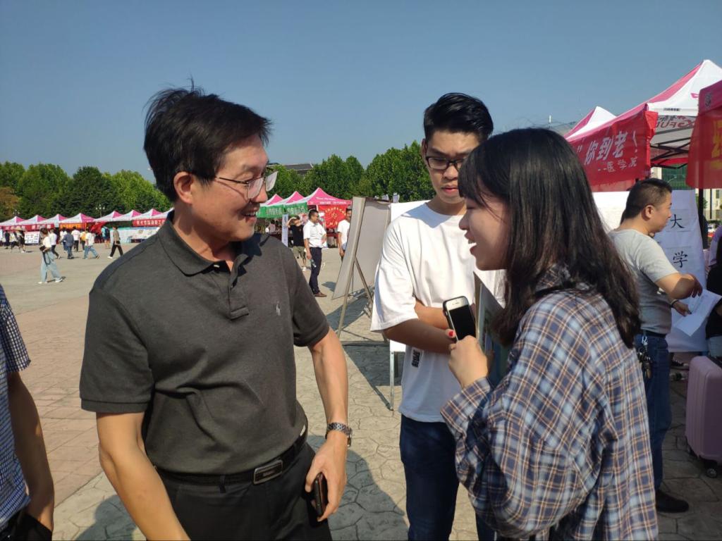 随后副校长刘伦钊也来到经管学院迎新点,他提到:无论在哪个学校,经管学院都是最优秀的院系之一,如今看到经管学院师生的朗朗精气神,我相信经管学院的未来会越来越好。