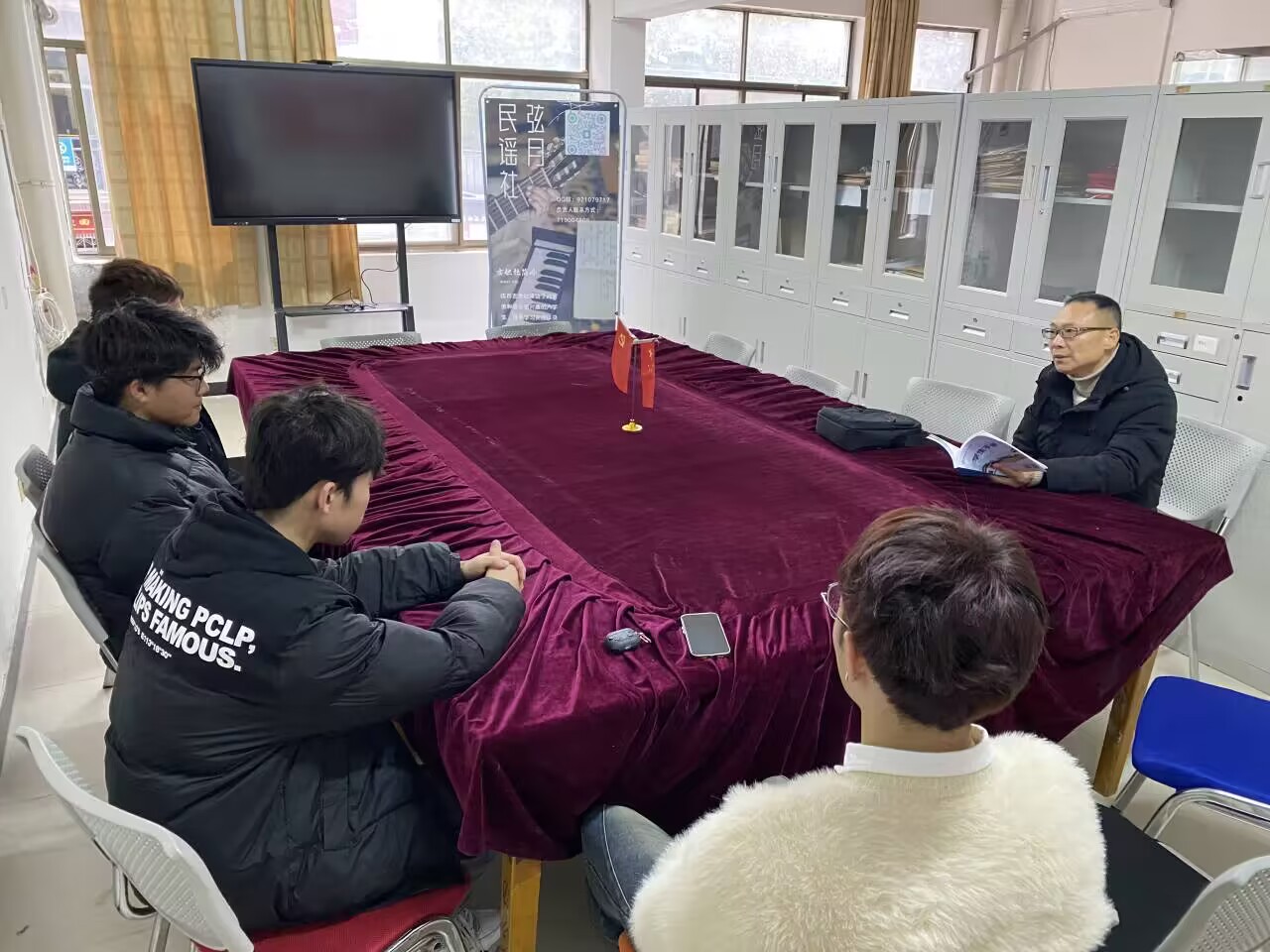 (教工通讯员:占正丽)3月6日,学院在13栋学生一站式社区活动室举行运动队春季训练工作讨论会。学工办主任黄灵辉与学院学生篮球队、排球队、乒乓球队等运动队负责同学参会。