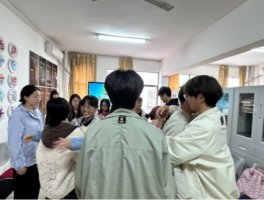 在第二个环节中,同学们分成两组,围成内外两圈,内外圈的同学两两相视而站,组成同伴。大家在老师口令的指挥下,选择做出“站着不动、“点头示好”“握手”“拥抱”等相应的动作。以次类推,每做完一组动作换下一个同学,当一轮完成后,同学们分享在这个小游戏中的感受,活动主讲人郝若曦进行点评:在人际交往中,我们有一个共同的倾向——希望别人能承认自己的价值,支持自己、接纳自己、喜欢自己。但是任何人都不会无缘无故地喜欢我们、接纳我们。别人喜欢我们也是有前提的,那就是我们也要喜欢他们,承认他们的价值。我们应主动敞开心扉,接纳、肯定、支持、喜欢他人,这样别人才会接纳、肯定、支持、喜欢我们。