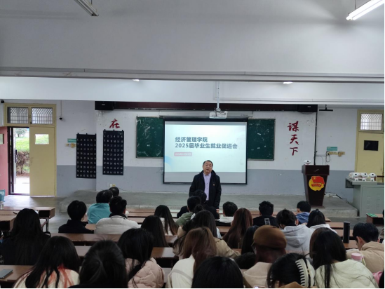 (通讯员 郝若曦)为抢抓就业工作关键期,进一步促进学院2025届毕业生就业工作,11月21日下午2点,经济管理学院在北区教学楼四栋团学之家召开2025届毕业生就业促进会。学院领导、各系主任、企业代表、毕业班辅导员、2025届毕业生参加。会议由学院党委副书记胡益丁主持。