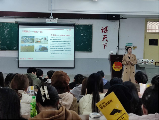 最后,京东公司和石花酒业集团进行现场宣讲。企业代表讲解了此次招聘的管理培训生、品牌策划专员、人力资源管理等岗位要求,分享了系统的培训计划与职业晋升路径。在互动环节,同学们积极提问,就工作内容、福利待遇、麻豆社等方面与企业代表进行了深入交流,现场氛围活跃,掌声不断。