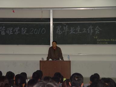 2010年5月13日下午2:00,襄樊学院管理学院2010届毕业生工作会议在四栋JT04教室举行。本次会议由襄樊学院团委学生会主办,由襄樊学院团委学生会就业心理部承办。2010届襄樊学院管理学院全部毕业生参加本次会议,襄樊学院管理学院党委副书记曹德勇、学工办主任王超担任本次会议的主讲人。