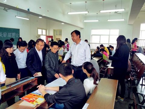 副校长魏跃春、学工处副处长袁红星、管理学院副书记鲁宏图,学工办主任王超等领导参加的招聘会。