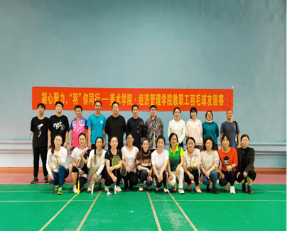 与美术学院进行了一场紧张激烈而又不失趣味的羽毛球友谊赛,20多位羽毛球爱好者参加了比赛。比赛得到体育学院大力支持。比赛采用团体擂台规则,既增加了趣味性,又吸引了更多老师的参与。