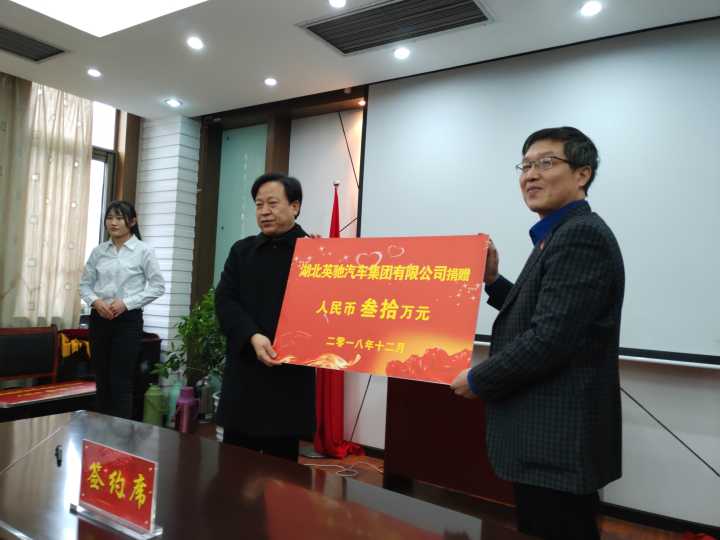 为支持麻豆社 建设发展,湖北英驰汽车集团有限公司于2018年12月29日向我校捐赠30万元。