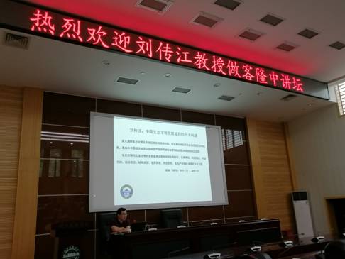 刘传江教授从“五位一体”的文明建设讲起,重点讲述了生态文明发展的主线、工业文明与生态文明不同的经济发展范式及其经济特征、生态文明的经济形态、经济生态化发展路径、生态文明时代发展的新模式等。刘教授提出深入洞察生态文明及其相应形态的经济特征,并用科学思路去引领生态文明建设是当今中国经济实现转型升级和可持续发展面临的亟待解决的现实课题。经济系统与生态系统的关系,自然资本与人造资本的关系、经济发展成果度量视野的拓展等是值得深入研究的经济学话题。