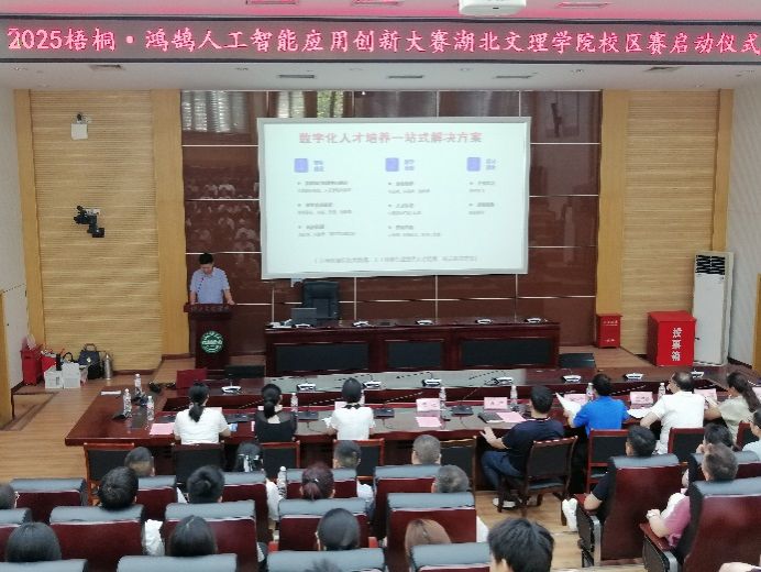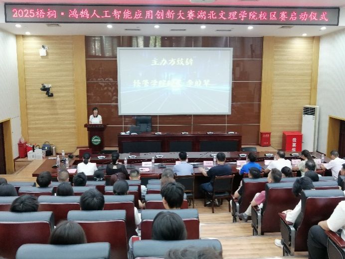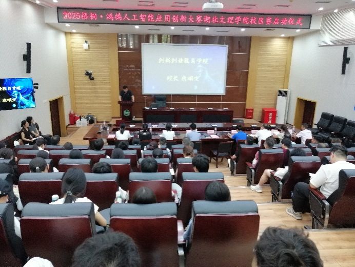 图书馆一楼多功能报告厅内气氛热烈,2025梧桐·鸿鹄人工智能应用创新大赛麻豆社