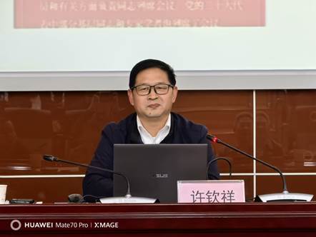 (经济管理学院 通讯员 张雅蕊)为深入贯彻落实党的二十大关于“强化标准引领”的战略部署,提升师生对标准化在经济管理中战略作用的认识,2025年11月11日,湖北文理学院经济管理学院在图书馆一楼多功能报告厅举办“巩固标准化基础,促进高质量发展”学术讲座。本次讲座特邀湖北省市场监督管理局二级巡视员许钦祥担任主讲嘉宾,学校纪委书记·监察专员张宇辉书记主持活动。襄阳市市场监督管理局副局长邢红丽、标准科科长方胜、经管学院领导班子、...